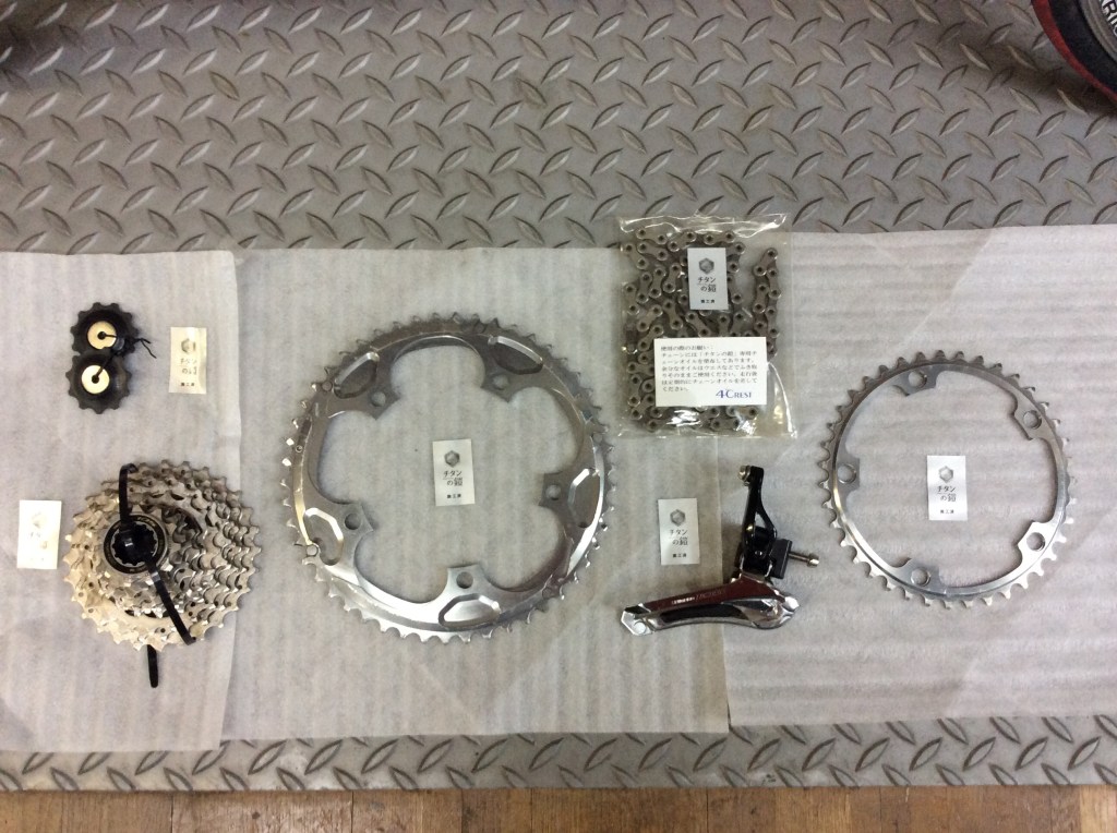 P.Gチタンの鎧 オーバーホールのついでに駆動系をチタンコーティングしました。 クレストヨンドの新サービス 「チタンの鎧」 チエーンリング・スプロケット・リアディレイラープーリー・フロントディレイラーブレード・チエーン¥16,500(税込)※付け外しの工賃は入っていません 特許出願中の最先端ナノテクノロジーは見た目にはあまりわかりませんが 乗ってみるのが楽しみです‼️ メンバーの方以外は有料(¥500)になりますが 試乗して体感していただけます。 興味のある方は是非ご来店ください。 共有: クリックして X で共有 (新しいウィンドウで開きます) X Facebook で共有するにはクリックしてください (新しいウィンドウで開きます) Facebook 投稿者: サイクルショップ P.G 広島にある自転車屋です。 サイクルショップ P.G の投稿をすべて表示